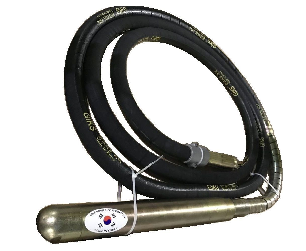 GIKS 4/60 - элемент системы глубинного вибратора по бетону. Это четырехметровый бронированный шланг с вибронаконечником размером ø60 мм. Инструментарий необходимо подсоединить к внешнему портативному электроприводу (приобретается отдельно). Комплект в сборе применяют для укладки цементных заливок.